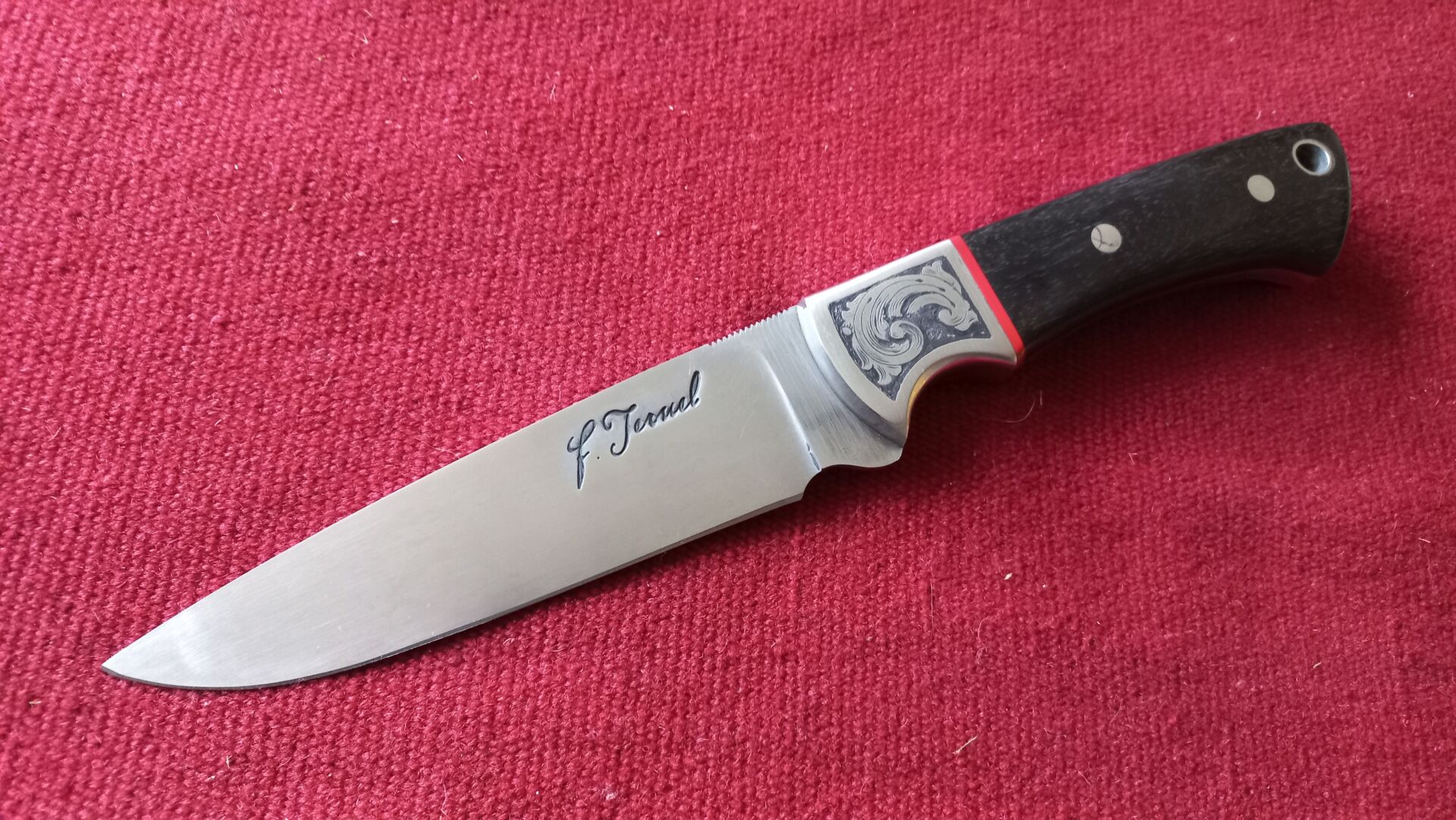 Cuchillo de campamento en acero Bohler K720, 4 mm de espesor.